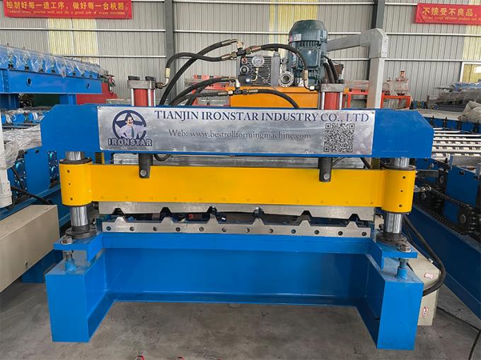 Trapezoidal sheet roll forming machine popular sell in many countries, common trapezoidal roofing sheet rolling thickness from 0.3-0.6 mm, material use PPGI (Pre-Painted Galvanized Steel ) material